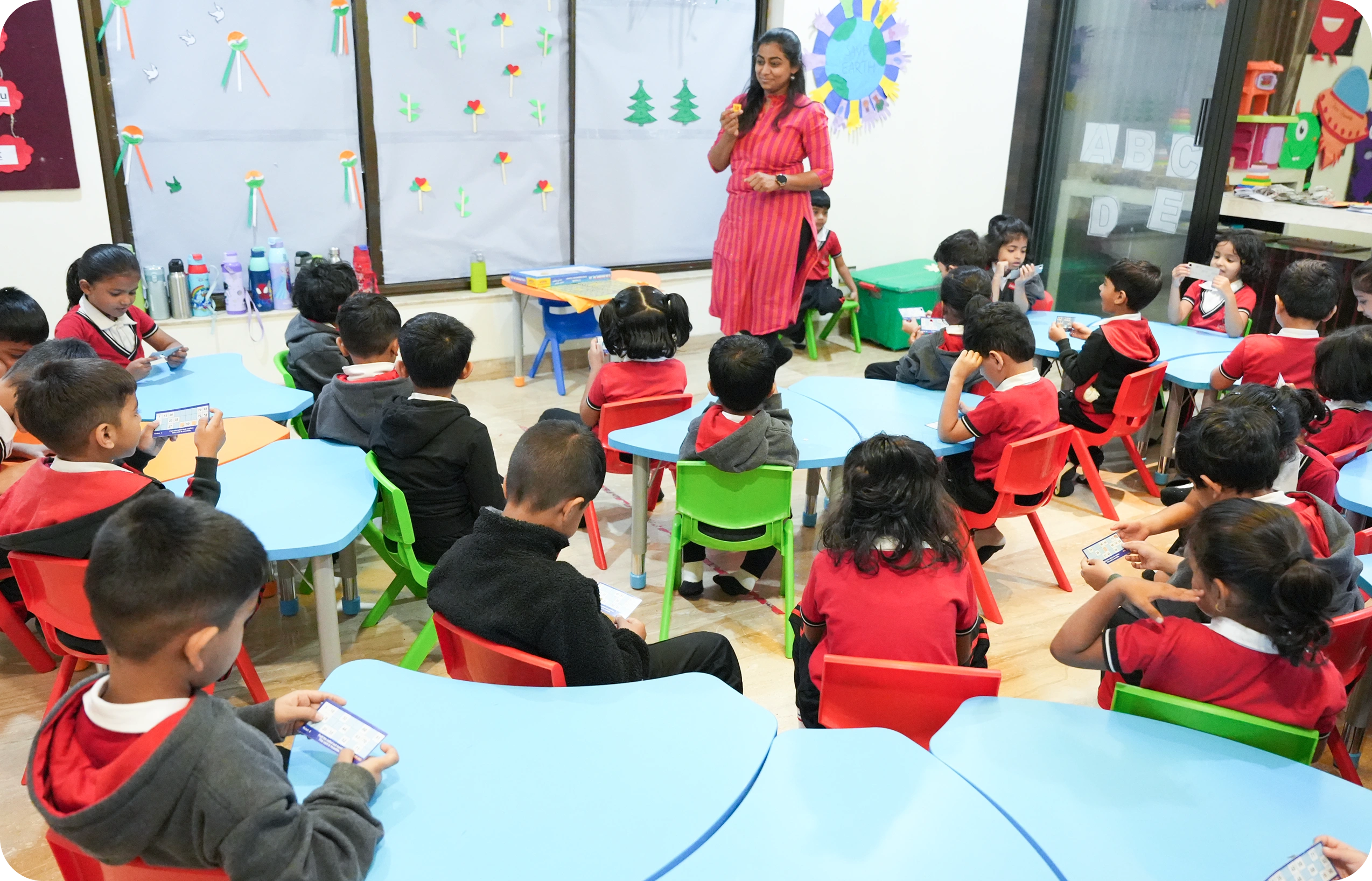 We welcome children from 1.5 years through to Senior KG (5–6 years). If you’re looking for a play school in Mukundnagar Pune for a 2-year-old, our Playgroup is the ideal starting point.