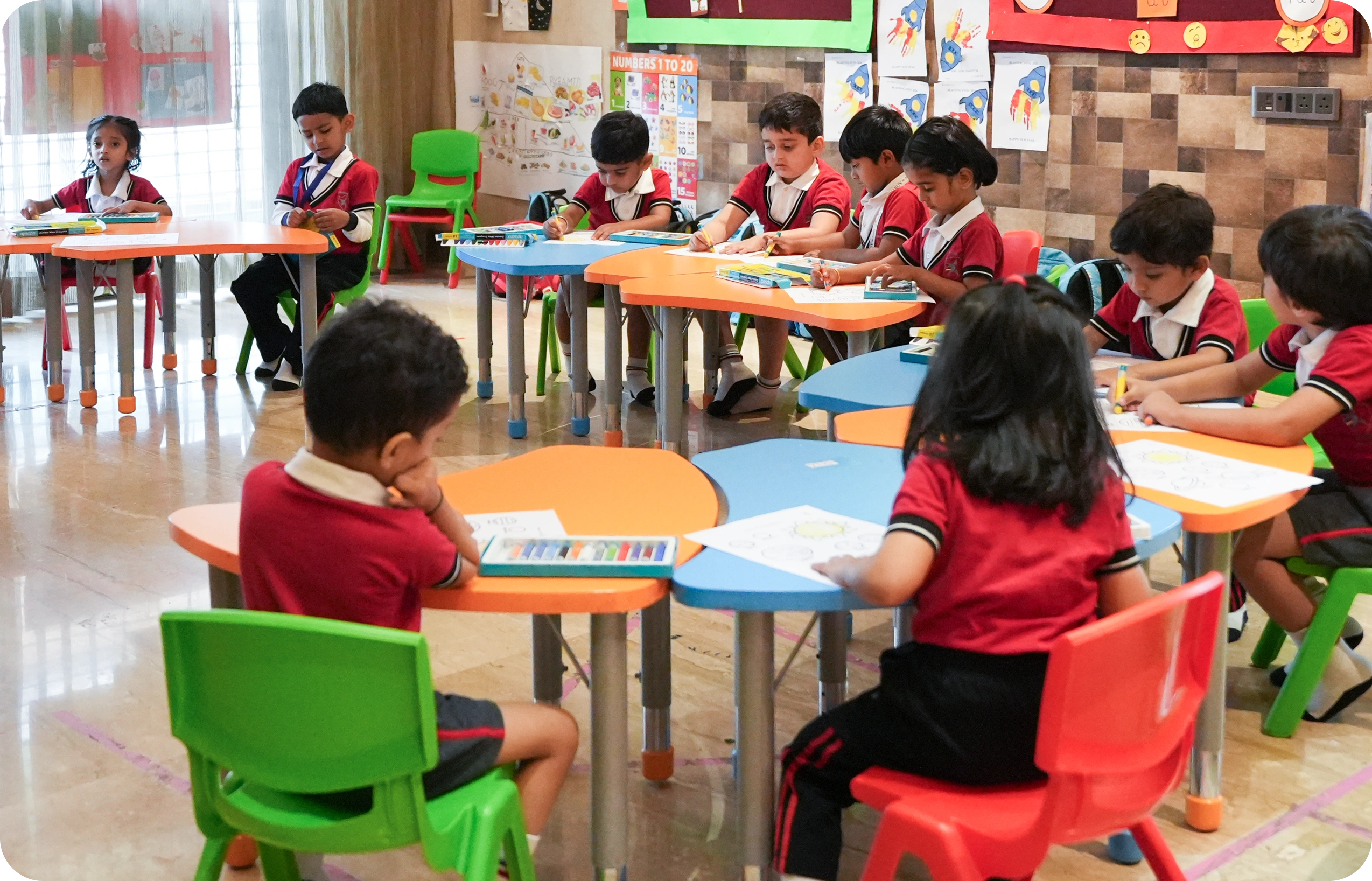 We follow a structured, activity-based learning approach focused on overall child development. As one of the best preschools for child development in Pune, we believe children learn best through doing, not sitting.