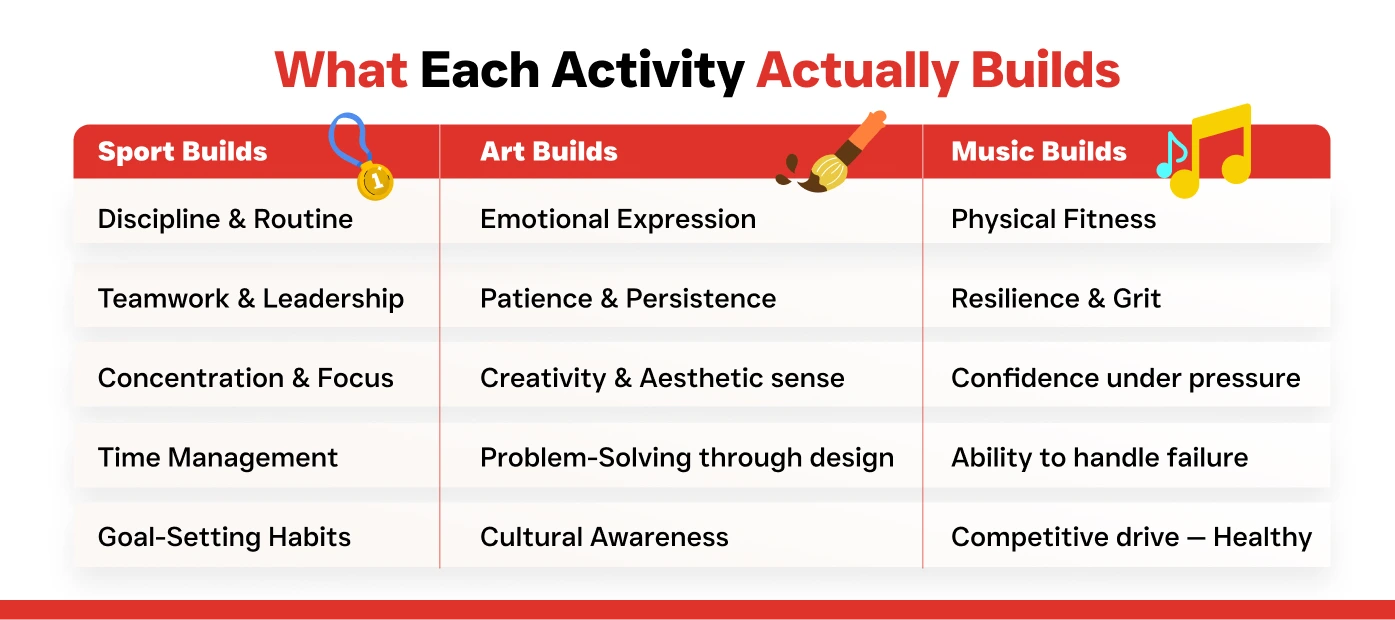 Parents often think of extracurriculars as enrichment, a pleasant add-on for well-rounded children. But look at the skills each activity develops and you will see something different: a structured, rigorous programme of human development that complements academic learning in ways a classroom alone cannot.