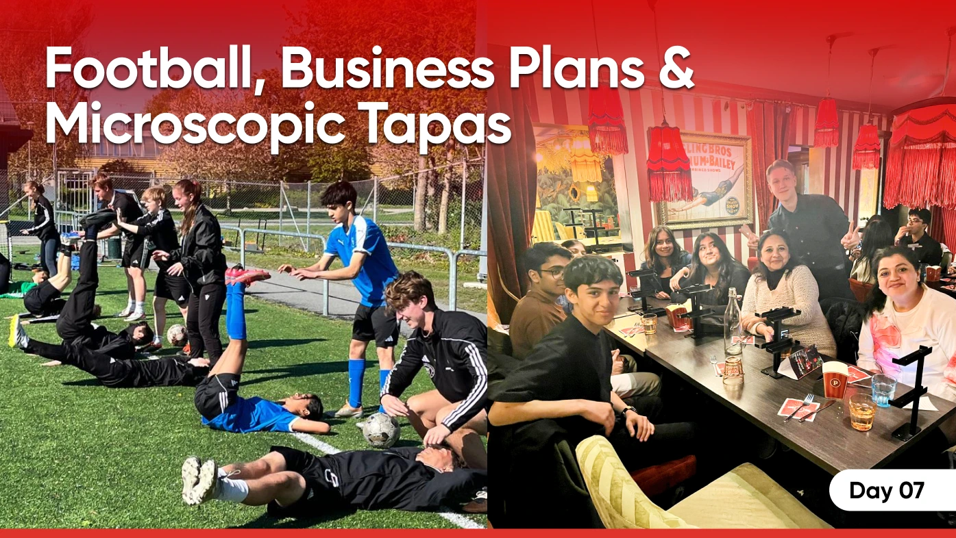 The day began early for two Dhruvians who joined the Swedish school team for a morning football practice. Lacing up their boots and heading out while the rest of us enjoyed an extra half hour of relaxation before heading out. As they trained on the field under the crisp Swedish sky, the rest of us slowly eased into the day, recharging before we all regrouped to work on our entrepreneurship project. Gathered around tables with our Swedish peers, we brainstormed, exchanged ideas, and refined our plans—turning quiet conversations into sparks of creativity and collaboration.